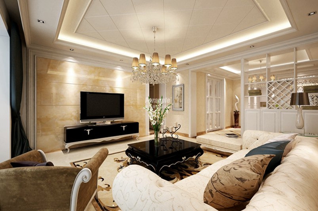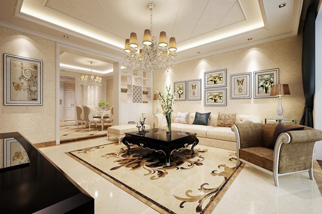 设计说明:华润外滩九里古典欧式风格兼备豪华、优雅、和谐、舒适、浪漫的特点,受到了越来越多业主的喜爱。但是纯正的古典欧式风格适用于大户型与大空间,在中等或较小的空间里就容易给人造成一种压抑的感觉。这样便有了简约欧式风格(也称为现代欧式)本案的风格恰如其分的结合了古典欧式的稳重奢华,和简约欧式的温馨明朗。上流社会气息浓重,视觉感强烈。吊顶只采用简单线条与造型,在空间层次上,上轻下稳。浓烈的色彩,精美的装饰达到雍容华贵的效果,厚实的花纹地毯,柔美的线条...