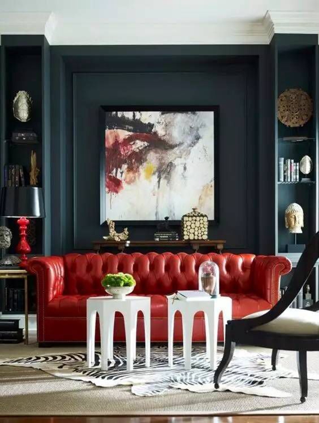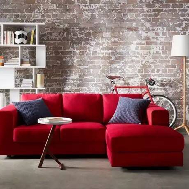 红色系沙发搭配指南:红色系的沙发吸睛力MAX,所以其他装饰配置简单为宜,如浅色系的抱枕,浅色系的地毯,颜色不出挑的茶几,很容易搭配出一个温馨时尚吸人眼球的家。