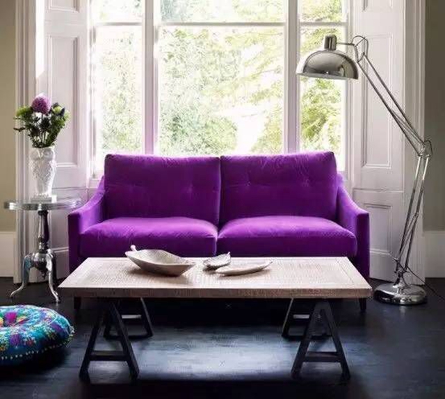 紫色系沙发搭配指南:紫色充满了浪漫神秘,让人遐想和回味。紫色的沙发,搭配颜色稍浅的地毯或者抱枕,给人一种说不出的优雅柔和。紫色可以容纳许多淡化的层次,一个暗的纯紫色只要加入少量的白色,就会成为一种十分优美、柔和的色彩。随着白色的不断加入,也就不断的产生出许多层次的淡紫色,而每一层次的淡紫色,都显得很柔美、动人。