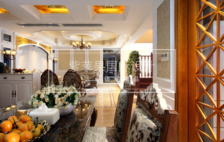 本案例的别墅装修设计不似平常的欧式风格案例,紫苹果装饰公司设计师在本案例中配合别墅装修客户低调的性格特点,融入现代简约风格的设计理念,从浮夸的欧式雍容富贵偏向简单低调的奢华大气,以毫不张扬的低调质感凸显别墅业主的身份。