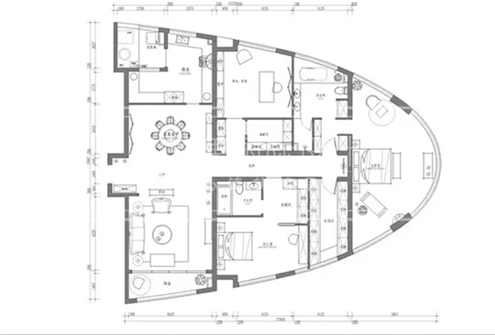 主卧空间解析:卧室空间呈半圆形状,开阔的弧形落地窗,让卧室空间光线明亮而舒适。此案位于滨江水岸,风景独好,卧室的开放性空间如同一个观景台,赏景最佳处,设计师采用色调细腻高贵的蓝色,让卧室空间舒适唯美,自成景观,与室外风景相得益彰,充满浪漫风情!