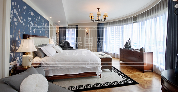 设计师用多元的手法,混搭的方式,根据户型的特点,以及客户对生活品质的需求。将美式风格的浪漫情怀与中式典雅相结合,让我们在感受美式浪漫气息的同时也能感受到空间的华贵与典雅之美。
