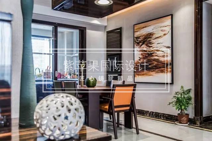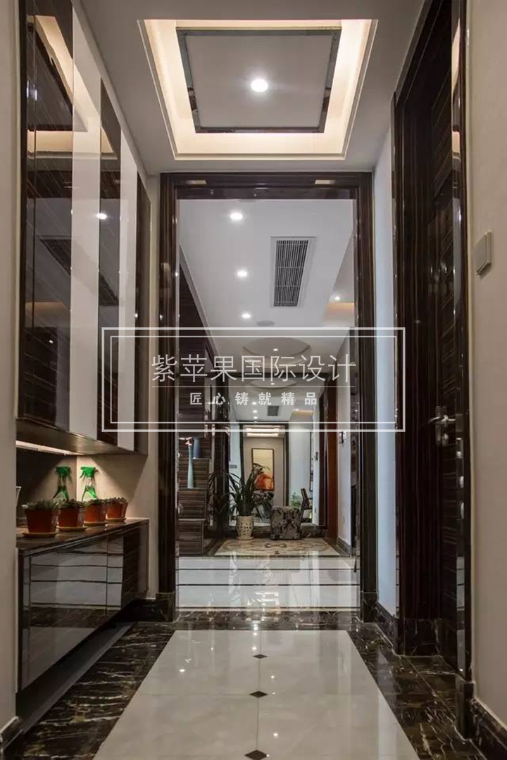 门厅的重要性对于居家体验来说最重要的不是装饰,而是收纳随身物品与更衣功能的满足。设计师利用纯天然质感的黑檀纹理搭配亮光烤漆的色泽,体现现代的科技感做到了鱼和熊掌兼得。走在空间里,能时刻感受到它的精雕细琢,时尚干练,富丽堂皇而又不失温馨。