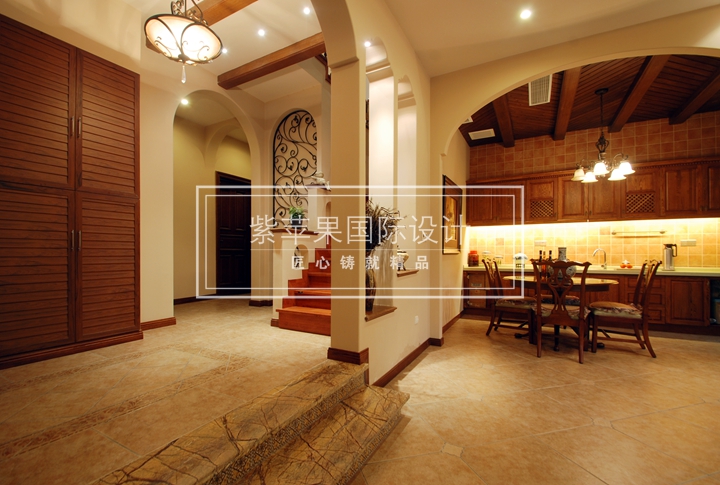 在别墅设计中,楼梯作为承接楼下和楼上的通道,往往起到了画龙点睛的作用,它可以是小巧的,安静的,在一个角落静静的沟通着上下两个空间,深色的地板,幽静的灯光,仿佛在诉说着一个深邃遥远的故事。