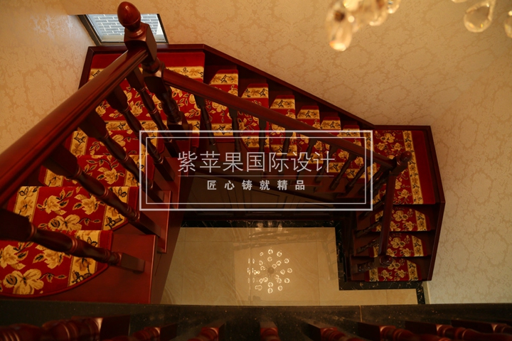 中式雕纹栏杆总归是不错的选择,配合深色的印花地毯,在步伐交替中感受着思绪的变化。