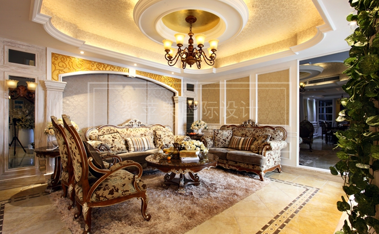 当浪漫的艺术气息缓缓流淌在这个空间的时候,时间是静止的。当华丽到了极致时候,它本身就是美的一部分,客厅风格主打欧式。我们都知道,欧式是最喜奢华的, 因为喜欢, 所以专注,天花板的格局撑起了真个空间的优雅的旋律,第一眼是美,然后才是奢华。