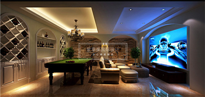 活动室的设计也是其中一个亮点,功能强大的影音播放,另外桌球和小型酒柜的完美结合,让人在和朋友亲人绅士运动之后品一杯红酒,试想一下不正是我们朝思暮想梦寐以求的生活吗?
