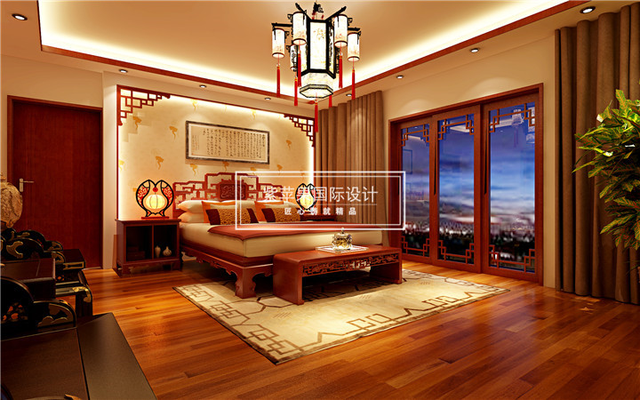 嘿嘿,有没有感觉到画风突变,满眼热烈激情的中国红就好像是穿越回到了明清时期的中国一样。大红色的门窗,床,原木材质的地板,中国结,书法字画,精致的宫灯设计,房间的每一个细节都体现着浓浓的中国风情。钟情于中国风的您这款风格不容错过哦...