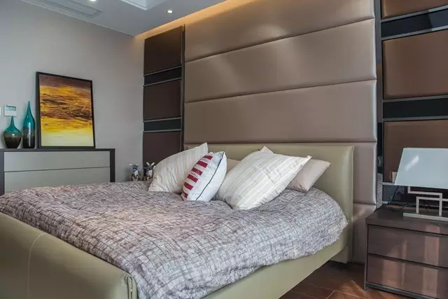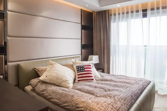 别墅设计师这次采用的是纯棉寝具,色彩简约,有着春意绵绵的清新格调,中和背景墙的深邃与精致,让空间瞬间温柔,明媚,放松。