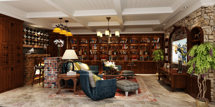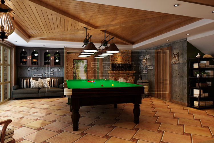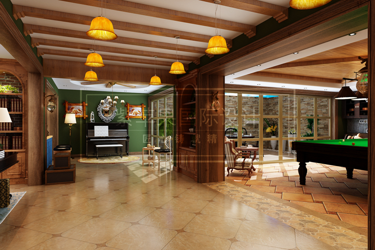 作为美式别墅设计,那么首先一定要保证足够宽敞的空间,聚会,娱乐,烧烤,唱歌,因此娱乐设计越多越好,台球室可供大家一起娱乐,宽敞通达的大厅也是小孩子调皮捣蛋的最佳场所。