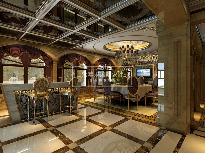 客厅顶部用大型灯池,并用华丽的枝形吊灯营造气氛。门窗上半部多做成圆弧形,并用带有花纹的石膏线勾边。另外壁炉的设计是巴洛克风格的一大特色,也许只是一个壁炉造型改造成电视墙,但是欧式风格的别墅装修基本都可以看到壁炉的影子。色彩鲜艳的布艺沙发,浪漫的罗马帘,精美的油画,制作精良的雕塑工艺品,无处不体现着巴洛克风格的雍容华贵,带给人顶级的生活享受,让人不禁想在这样的沙发上来个“北京瘫”。
