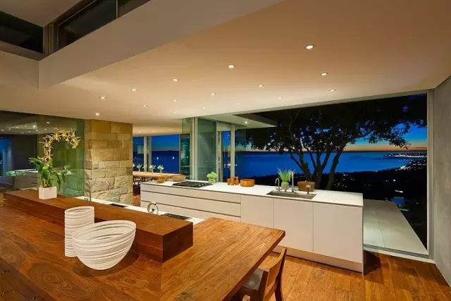 把海景四周的环境引景入室,并不是那么容易的,首先建筑师要很厉害才行。走进厨房为自己爱的人烧出美味的饭菜,共享此景足矣。