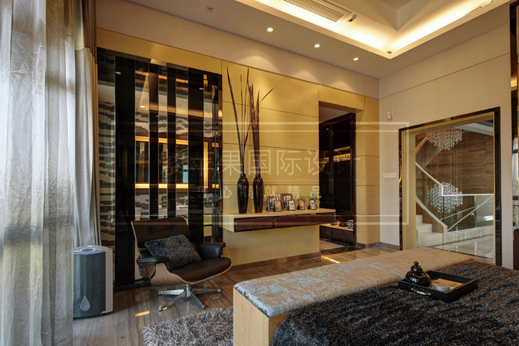 设计亮点:室内整体以棕黄色为主基调,辅以白色色及材质,营造出明亮利落的空间视觉效果,部分家具采用胡桃木贴面,设计中屏弃了造型与材料的繁复叠加,装修部分以减法的设计理念朔造空间格局,装饰方面则运用了加法的设计手段来渲染生活的品位。洗练、明朗、舒适、自然是它的气质,简约是它的别墅设计风格,简约设计就如同具有质感的白纸,可以随着时间的推移对环境进行调整、改变时留出足够的空间。